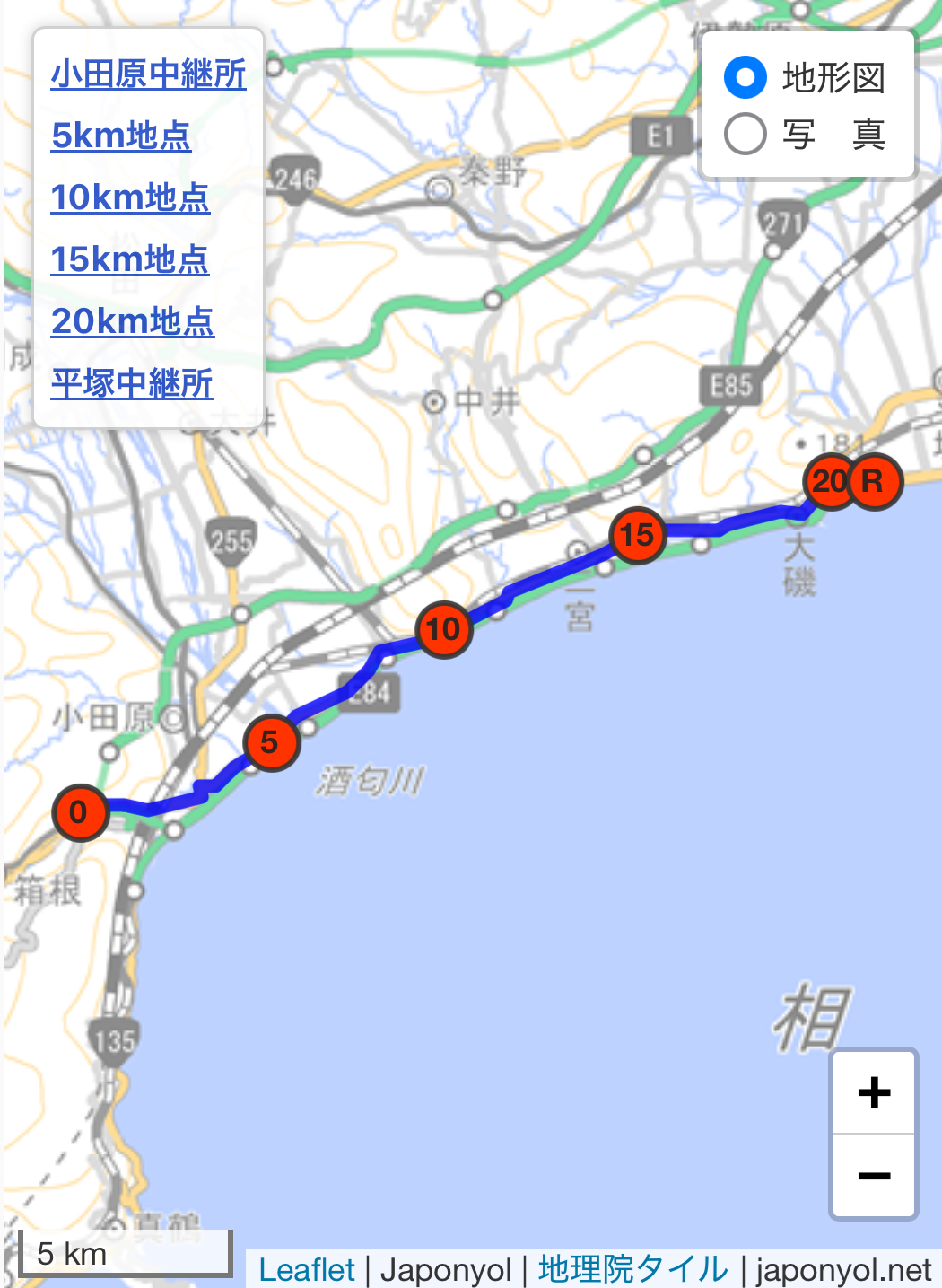 7区 (20.9キロ)小田原中継所~平塚中継所