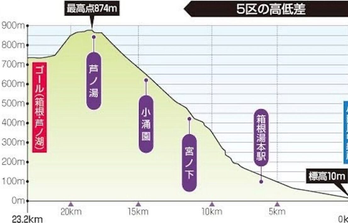 そんな2区の距離は23.1キロと最長区間になるうえに、難所である2つの坂があります。
