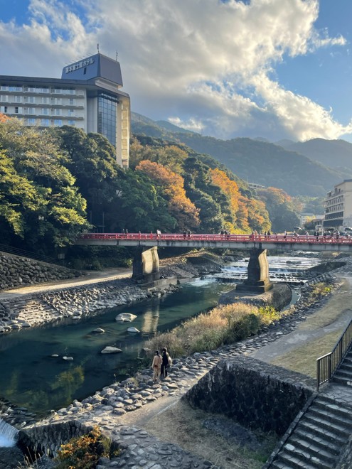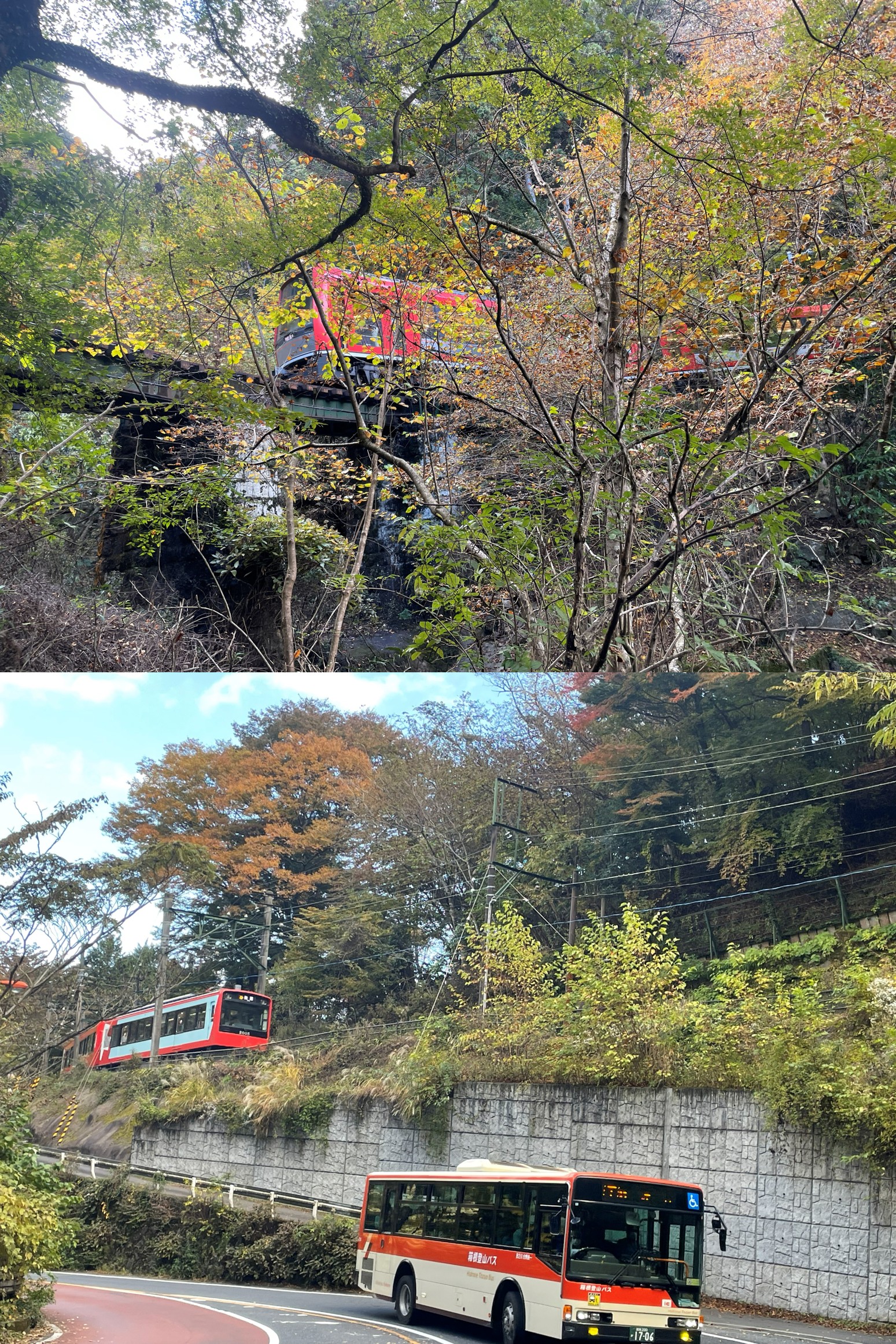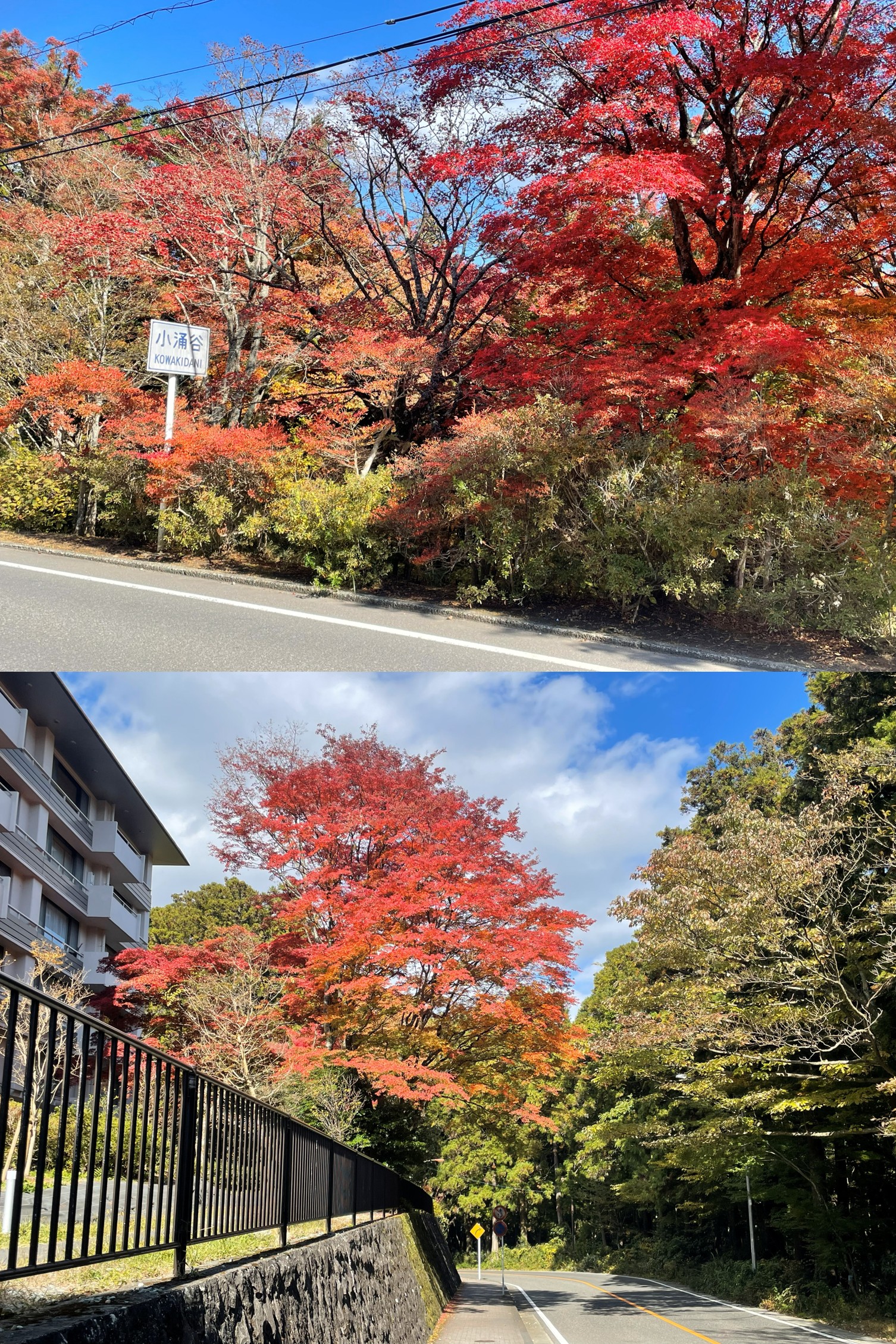 昨日から気付いてはいましたが、箱根湯本(麓)あたりではそれほどでもなかったのに、小涌谷周辺は鮮やかな紅葉が見事でした!この辺りでも高低差を感じますよね。