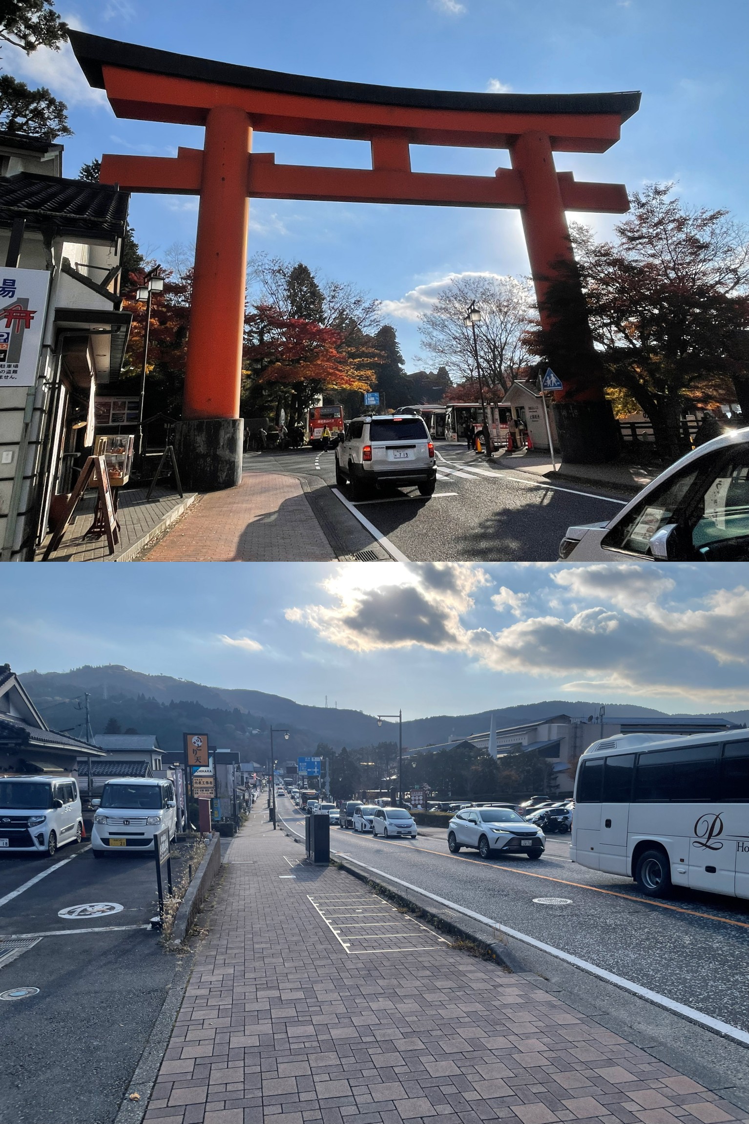 大鳥居を超えて、湖畔の道路をテクテクと。あれ?